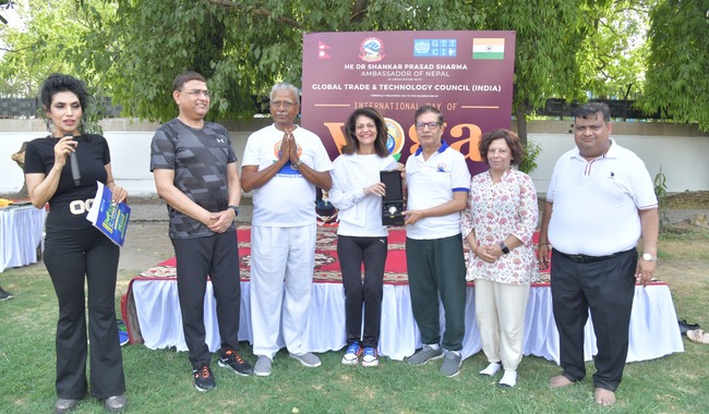 New Delhi, 19th June. The Global Trade & Technology Council of India (GTTCI), in association with His Excellency Dr. Shankar Prasad Sharma, Ambassador of Nepal to India, organized a yoga session at the Embassy of Nepal to commemorate the 10th anniversary of the International Day of Yoga. This significant event featured an array of distinguished guests, diplomats, and ambassadors.