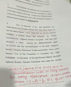 Having failed to get justice from the Haryana Govt. victim Tasbir Sharma has approached Punjab and Haryana High Court making Haryana Government through the Chief Secretary ,Secretary Vigilance for Chief Secretary, DG Police, DG Anti Corruption Bureau Ashok Sharma and SP, ACB, Gurugram as respondents.