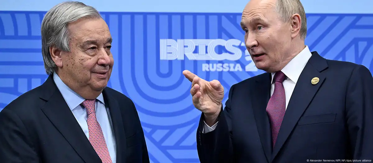 UNITED NATIONS – UN head António Guterres on Friday met with Russian President Vladimir Putin at BRICS Summit in Kazan and reiterated that Russia’s on-going invasion of Ukraine violates the United Nations Charter and international law.