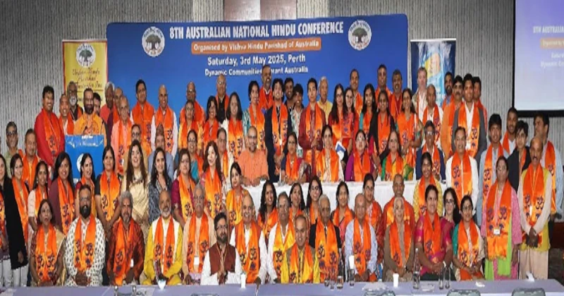 Perth, 6th May: The 8th Australian National Hindu Conference, organised by the Vishva Hindu Parishad of Australia Inc. and hosted by its Western Australia chapter, was held with great enthusiasm and participation at the Duxton Hotel in Perth on Saturday. Themed “Dynamic Communities: Vibrant Australia,” the conference brought together over 230 delegates from across the country, representing more than 40 Hindu temples, cultural associations, organisations, and youth groups.