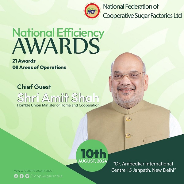 The NFCSF, an apex body that includes 260 cooperative sugar factories and nine state sugar federations across the country, is hosting the event. The awards are part of the organization’s annual initiative to evaluate and recognize the performance of cooperative sugar factories in various aspects, including Sugarcane Development, Technical Efficiency, Financial Management, Sugarcane Crushing, Sugar Recovery, and Sugar Export.