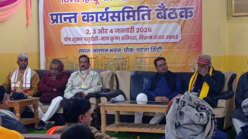 Patna, 4th Jan: The Vishwa Hindu Parishad (VHP), South Bihar, on Saturday began its three-day Provincial Executive Committee meeting at Jalan Bhawan, Patna City Chowk, marking a renewed push for organisational consolidation and ideological preparedness.