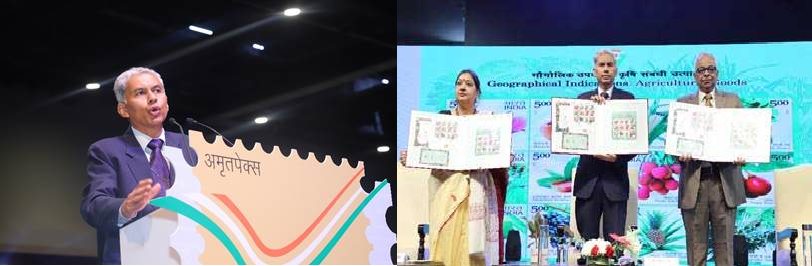 Speaking on the occasion of releasing a souvenir sheet of 12 stamps on Geographical Indication: Agricultural Goods at the 3rd day function of AMRITPEX-2023, Anurag Jain said that GI Indications are a great tool to increase the income of farmers, weavers and artisans.
