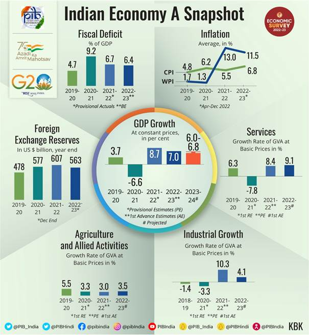 The Economic Survey highlights that the above transformative reforms undertaken by the government had lagged growth returns due to temporary shocks in the economy. However, in the present decade, the presence of strong medium-term growth magnets provides optimism and hope that once these global shocks of the pandemic and the spike in commodity prices in 2022 fade away, the Indian economy is well placed to grow faster in the coming decade.