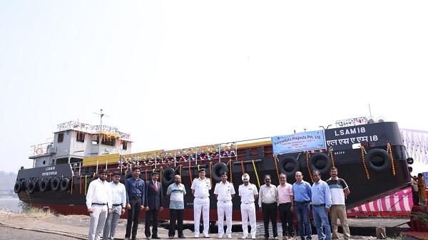 Thane, 29th Feb. The Indian Navy marked a significant milestone on February 28, 2024, with the launch of the ‘Ammunition Cum Torpedo Cum Missile Barge, LSAM 18’, the fourth barge of the 11 x ACTCM Barge Project. Constructed by MSME Shipyard, M/s Suryadipta Projects Pvt Ltd, located in Thane, the launching ceremony was graced by Cmde Shirish Dube from the Directorate of Ship Production.