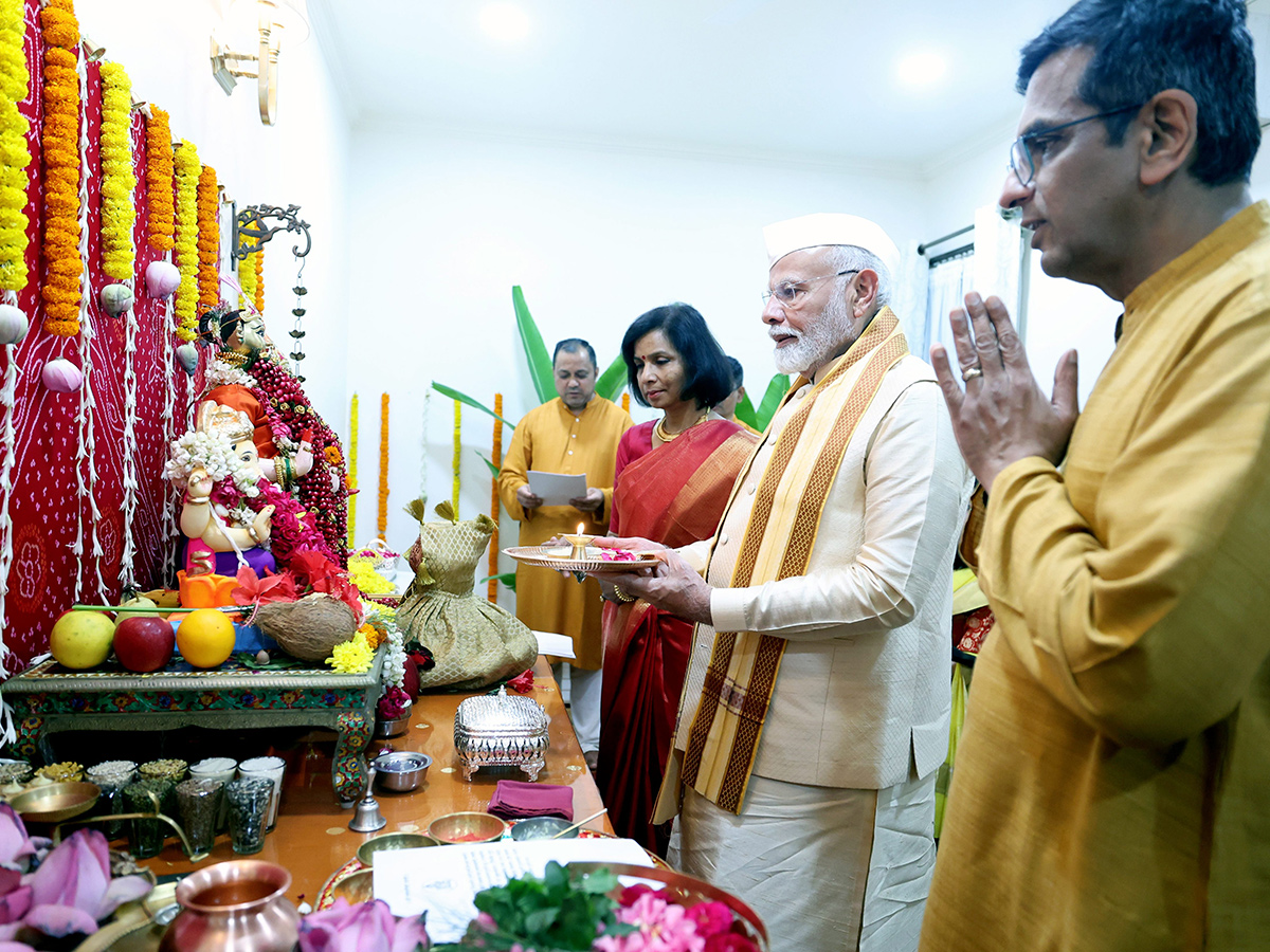 New Delhi, 13th September. The left-liberal faction in Bharatiya political discourse has once again found itself in a frenzy, this time over Prime Minister Narendra Modi’s visit to Chief Justice of India (CJI) DY Chandrachud’s residence for Ganesh Puja on September 11th, 2023. As images and videos of PM Modi performing the Ganpati Aarti at CJI Chandrachud’s home circulated on social media, prominent voices within this ideological camp began decrying the event as a threat to the independence of the judiciary and a violation of the principle of separation of powers. Such allegations, however, seem not only far-fetched but indicative of a broader agenda where religious and cultural gestures are politicized to suit a narrative of “democracy in danger.”