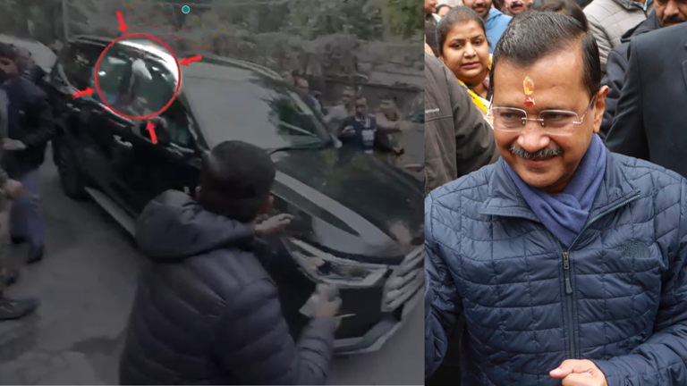 New Delhi, 19th Jan. In a high-voltage political clash ahead of the February 5 Delhi Assembly elections, Aam Aadmi Party (AAP) leader and Chief Minister Arvind Kejriwal’s car was allegedly attacked by “goons of the BJP” during campaigning in the New Delhi Assembly constituency on Saturday. The incident has sparked a war of words between the AAP and the BJP, with both parties hurling accusations at each other.