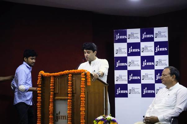 New Delhi, 1st May. Union Minister of Civil Aviation and Steel Jyotiraditya M. Scindia, together with students and faculty of Jagannath International Management School (JIMS) Kalkaji, New Delhi, on Sunday attended the broadcast of the 100th Episode of the “Mann ki Baat” program.