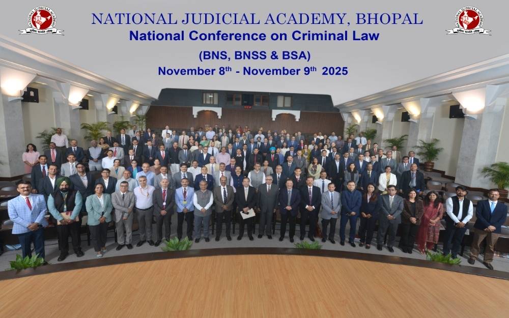 Bhopal, 10th Nov: The Ministry of Home Affairs (MHA), Government of India, in partnership with the National Judicial Academy (NJA), Bhopal, organized a two-day National Conference on the three new criminal laws on November 8–9, 2025. The event brought together 120 participants representing the judiciary, prosecution, and police from all states and union territories, along with eminent academics and legal practitioners.