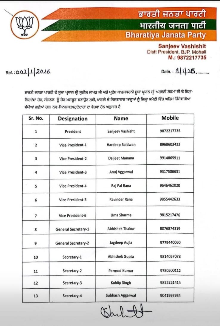 Expressing gratitude on being entrusted with the responsibility again, Garg thanked Punjab BJP President Sunil Jakhar, State Executive President Ashwini Sharma, Vice-President Subhash Sharma, State Mahila Morcha President Biba Jay Inder Kaur, District President Sanjeev Vashisht, and the entire BJP family for reposing confidence in her leadership.