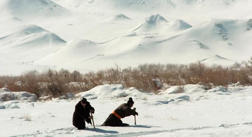 The dual “white” and “iron” dzud is marked by a very deep snow cover preventing animals from accessing grass (white dzud) combined with a short thaw and subsequent hard freeze that locks up pastures in ice (iron dzud).
