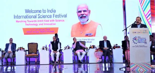 Bhopal, 22nd Jan. Chief Minister of Madhya Pradesh Shivraj Singh Chauhan and Union Minister for Science & Technology Dr Jitendra Singh on Saturday jointly inaugurated India International Science Festival, IISF-2022 in Bhopal with the theme, “Marching towards Amrit Kaal with Science Technology and Innovation”.