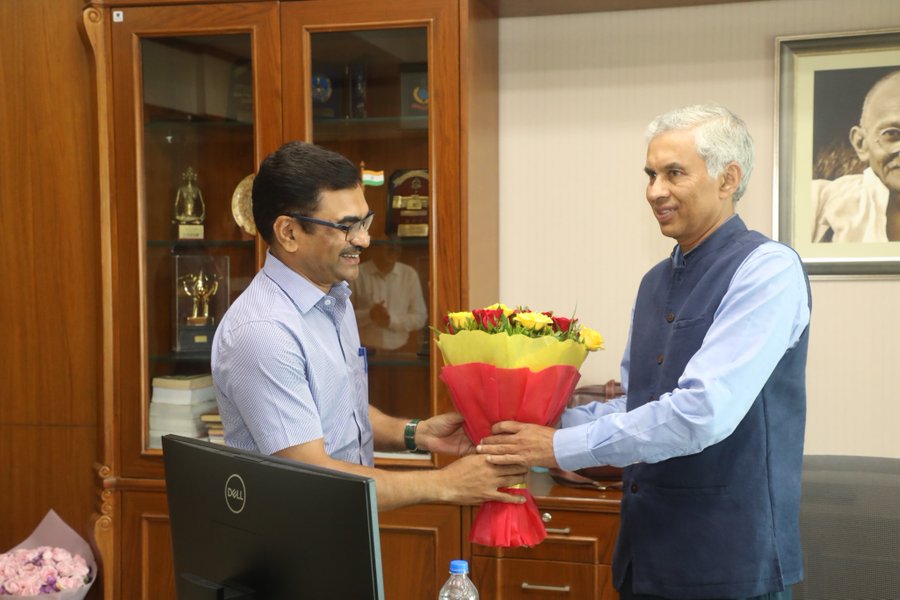 Bhopal, 4th Oct. Commissioner of Public Relations, Sudam Khade, met with Chief Secretary, Anurag Jain, and presented him with a bouquet.
