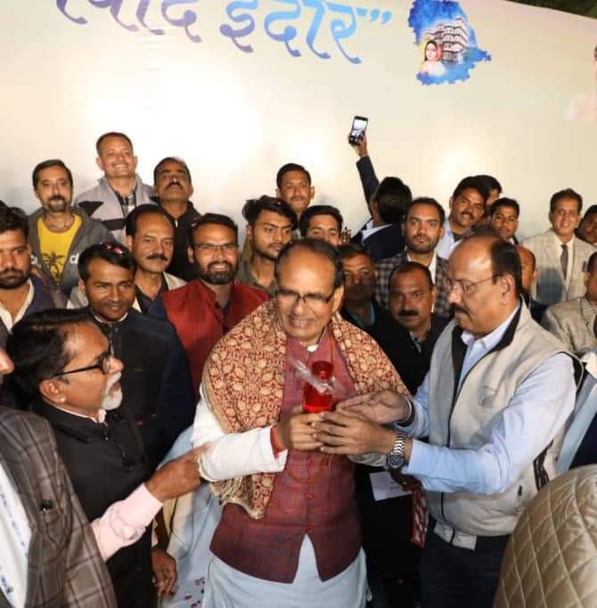 During their stay in Indore on Sunday, the State Press Club of M.P. informed Chief Minister Shivraj Singh Chouhan about the Yatra by presenting a shawl, a garland of Rudraksh, and holy Ganges water.
