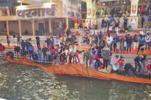 The team attended Ganga Maiya’s Aarti, which takes place in the evening at Har Ki Pauri. Media representatives also bathed in the Ganga and donated lamps.