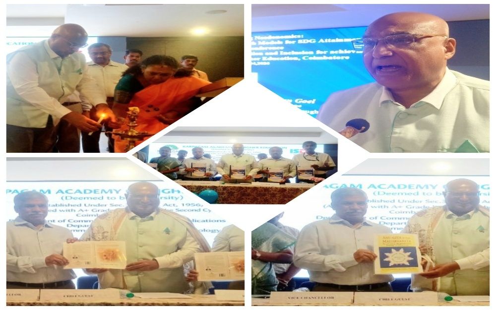 Coimbatore, March 4- Prof. Madan Mohan Goel, Propounder Needonomics School of Thought and Former Vice-Chancellor (Thrice) and superannuated Professor Kurukshetra University , delivered the keynote address at the National Conference on “Reimagining Economic Growth: Innovation and Inclusion for Achieving SDGs” organized by Karpagam Academy of Higher Education in association with International Skill Development Corporation.