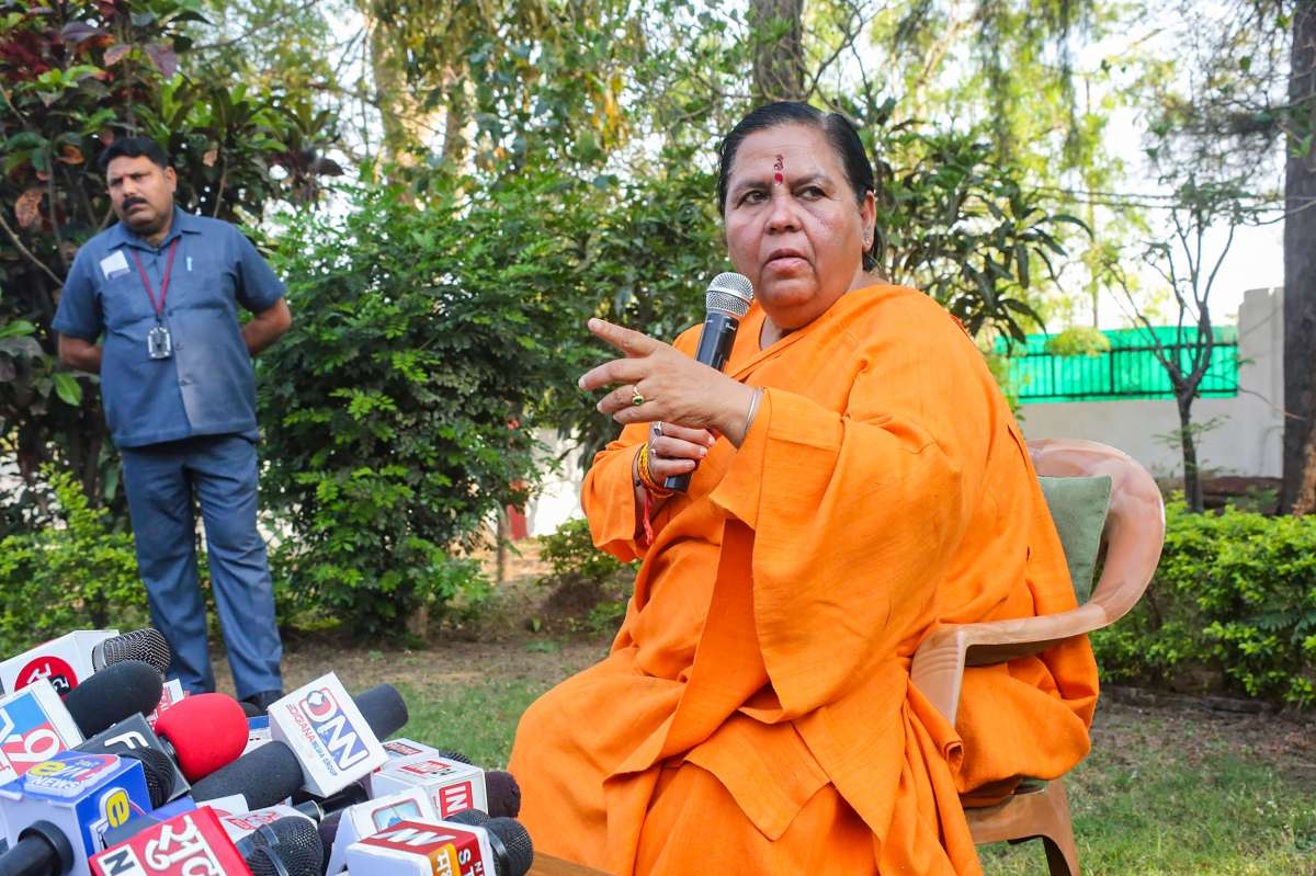 Bharti announced the launch of the “Madhushala Me Gaushala” (cow shelters in place of liquor outlets) program in support of her demand for a “controlled” liquor policy in the state after a four-day stay at a temple in Bhopal.