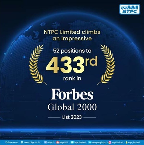 New Delhi, 15th June. NTPC Limited, India’s largest power generation company, has climbed 52 positions to secure the 433rd rank in Forbes’ “The Global 2000” List for 2023.