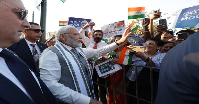 After landing at Athens International Airport, PM Modi proceeded to his hotel, where he would stay for the day, and met members of the Indian diaspora who were excitedly awaiting his arrival.