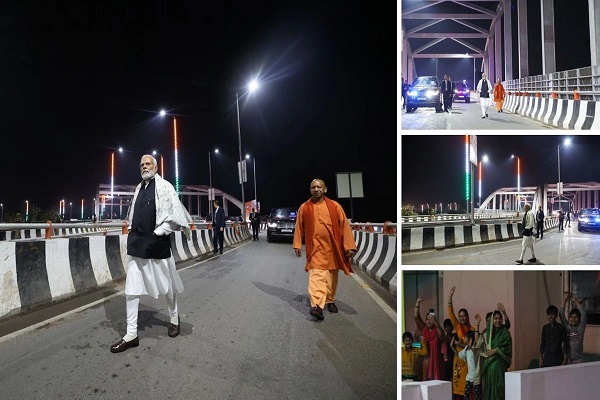New Delhi, 23rd Feb. Prime Minister Narendra Modi, arriving in Varanasi after a busy schedule in Gujarat, undertook an inspection of the recently inaugurated Shivpur-Phulwaria-Lahartara road at approximately 11 PM on Thursday.