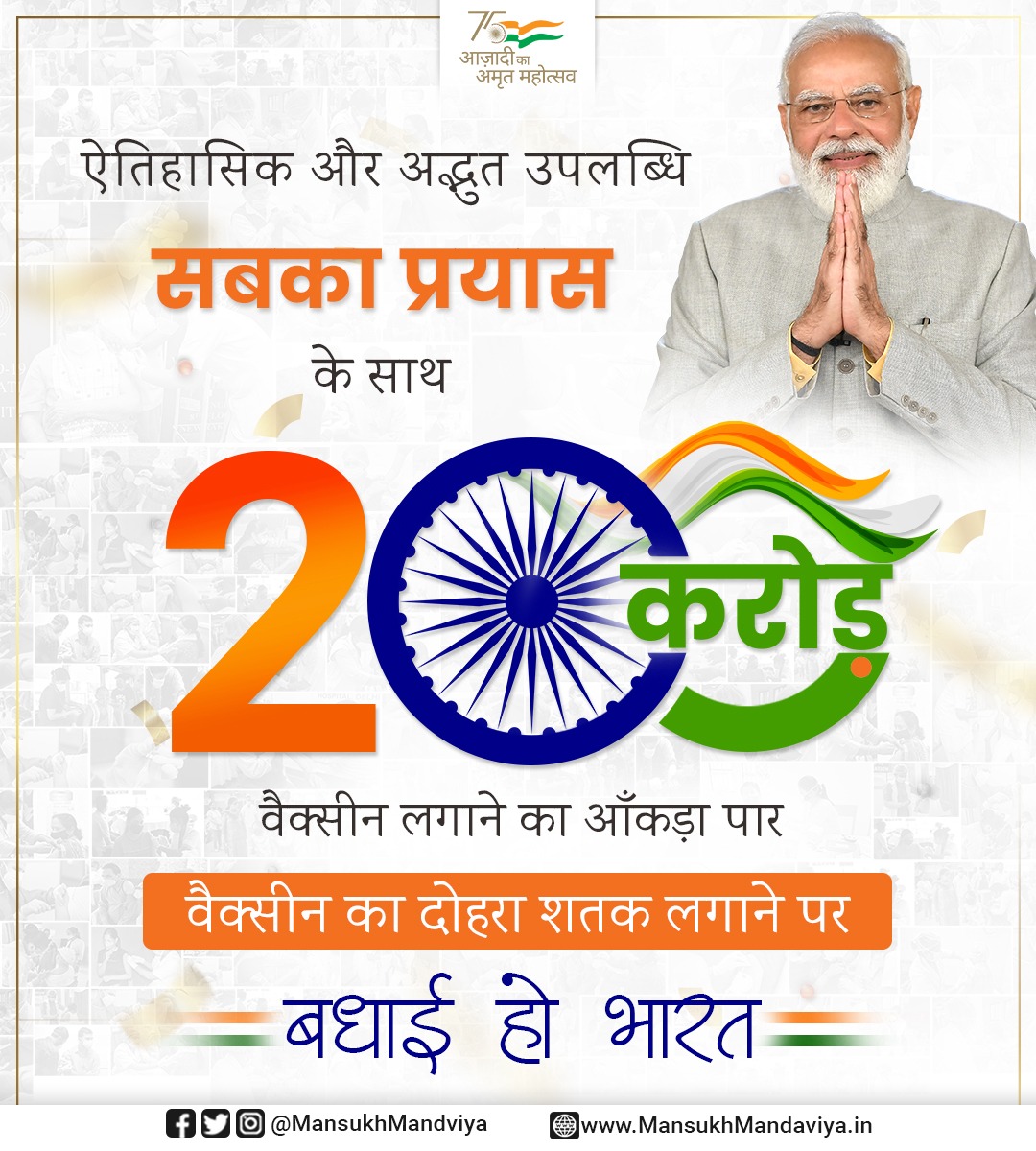 PM Modi tweeted in response to the announcement by the Union Health Minister Shri Mansukh Mandaviya, “India creates history again! Congrats to all Indians on crossing the special figure of 200 crore vaccine doses. Proud of those who contributed to making India’s vaccination drive unparalleled in scale and speed. This has strengthened the global fight against COVID-19.
