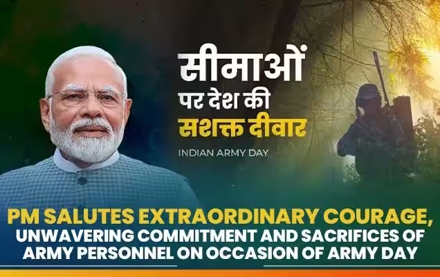 New Delhi, 15th Jan. On the occasion of Army Day, Prime Minister Narendra Modi has expressed his admiration for the exceptional bravery, unwavering commitment, and sacrifices made by Army personnel.