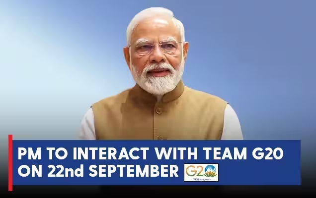 New Delhi, 22nd Sept. Prime Minister Narendra Modi will interact with Team G20 at Bharat Mandapam at 6 PM on 22nd September.