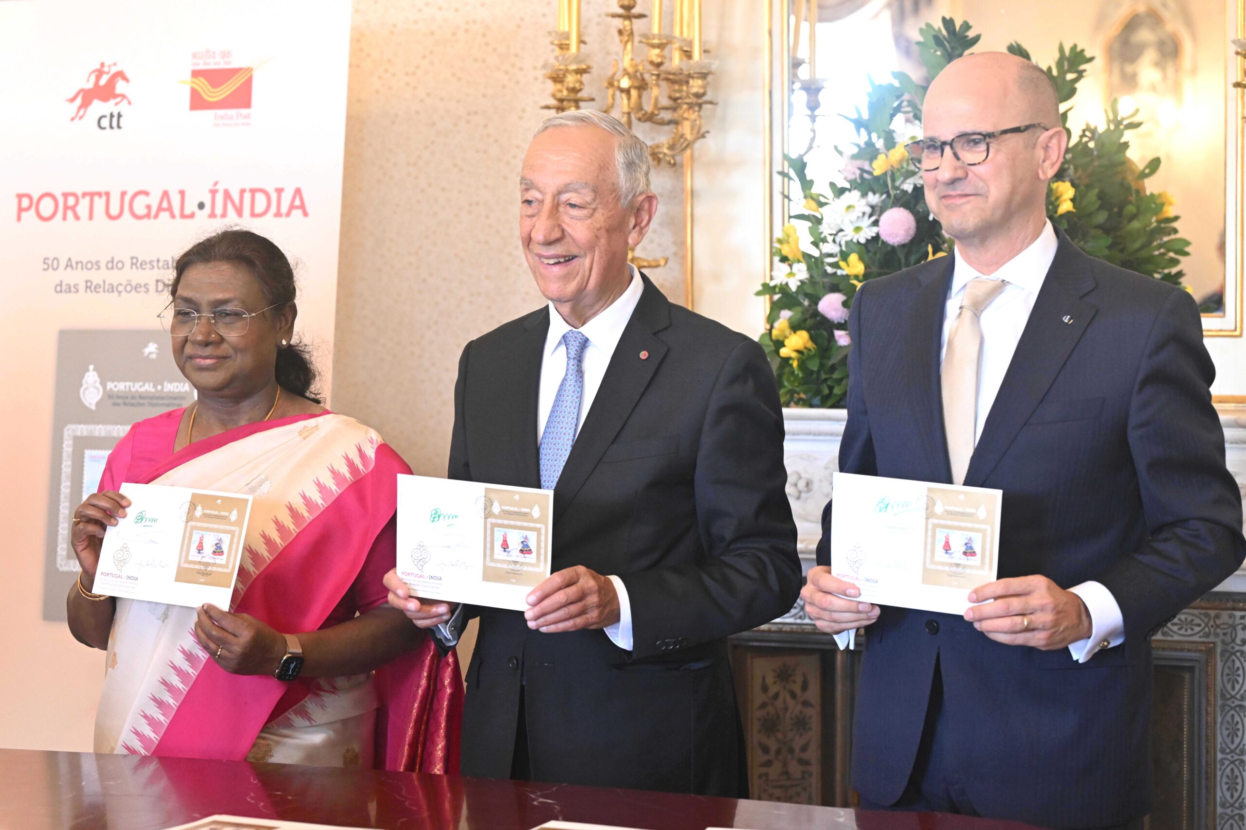 A key highlight of the visit was the joint launch of commemorative postage stamps by the two Presidents to mark 50 years of diplomatic relations between India and Portugal. The stamps, showcasing Rajasthan’s Kalbeliya costume and Portugal’s Viana do Castelo dress, celebrate the vibrant folk traditions and cultural heritage of both nations.