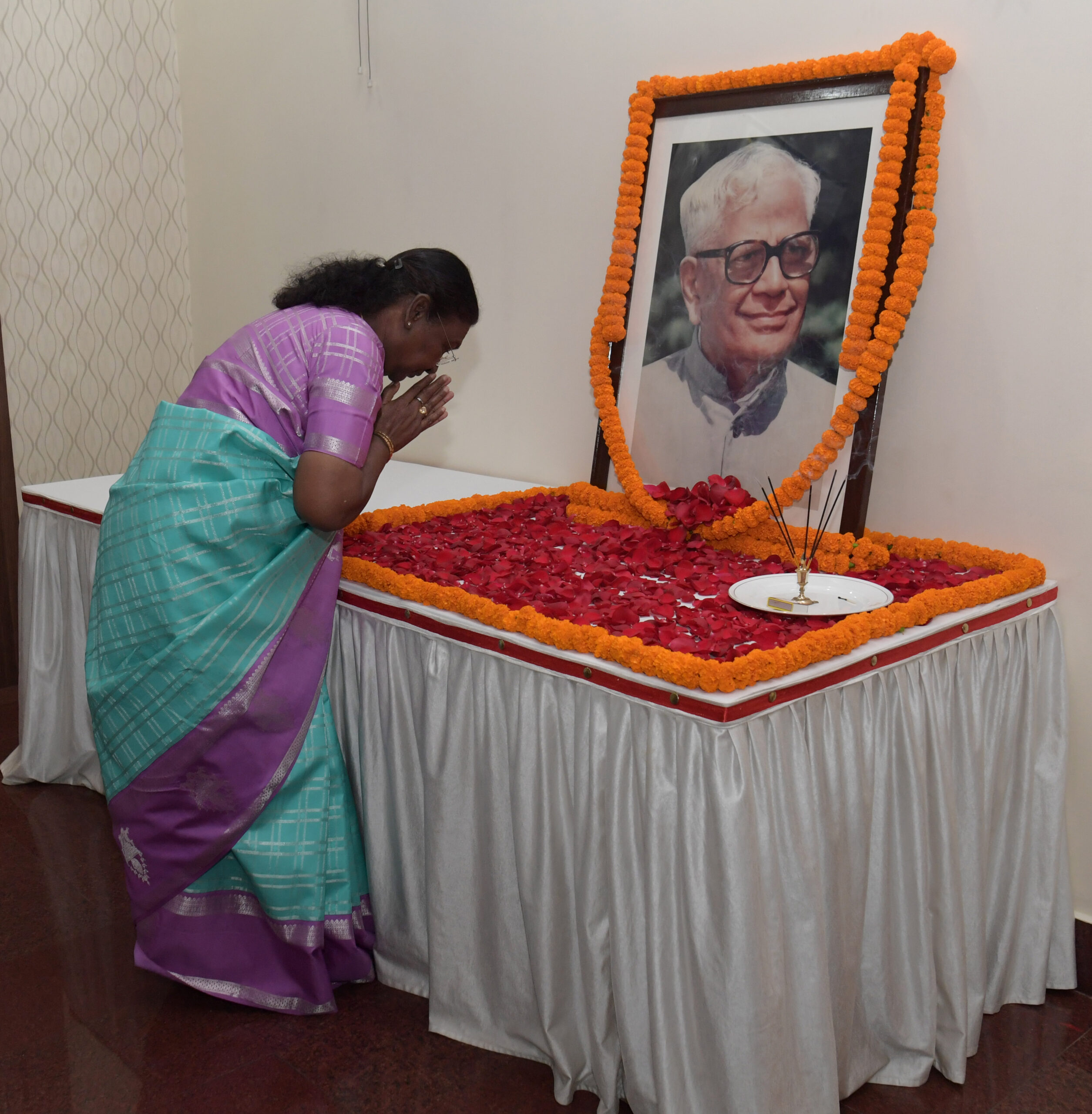 Bhubaneswar, 4th Dec. President Droupadi Murmu paid floral tributes to Shri R. Venkataraman, the former President of India, on his birth anniversary at Raj Bhavan in Bhubaneswar today.