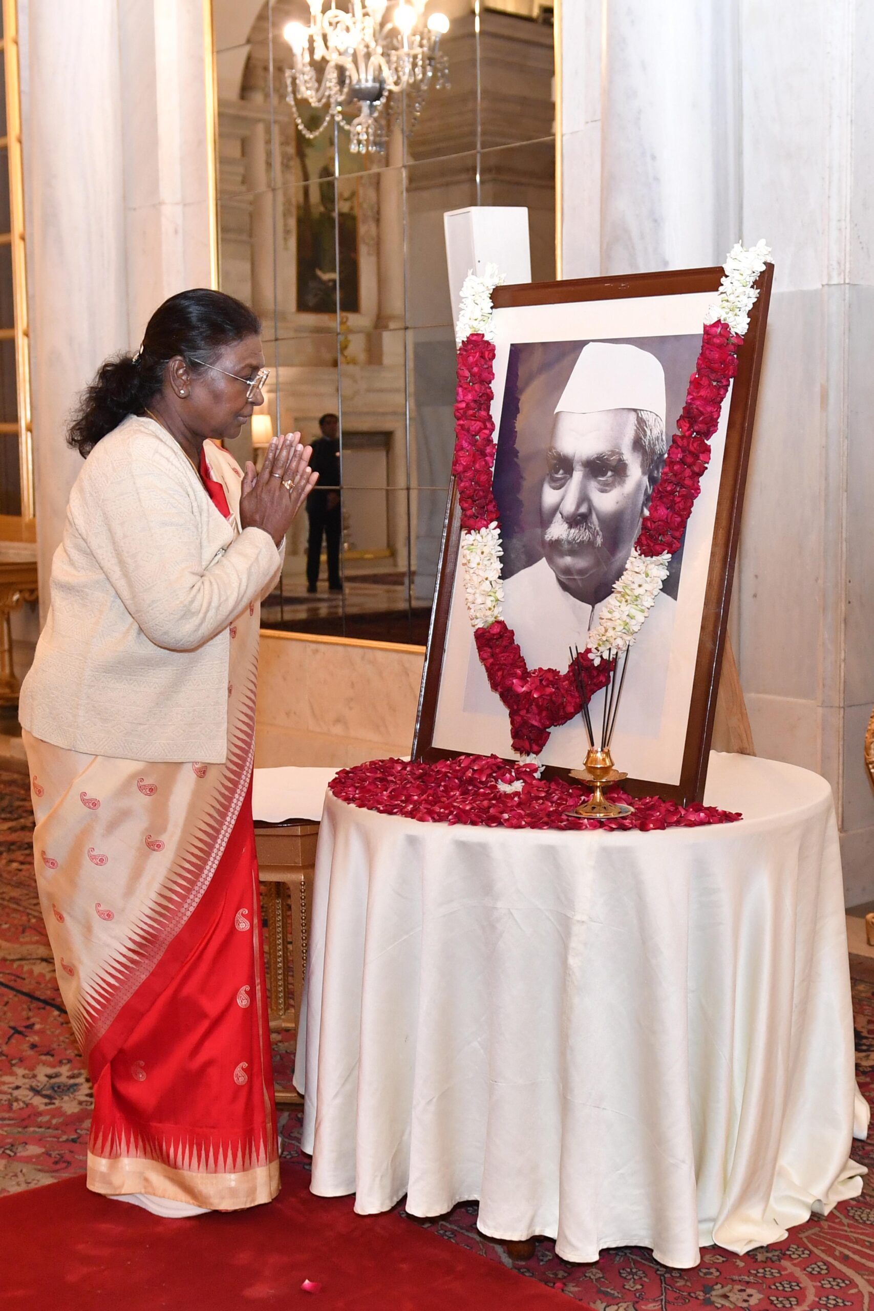 New Delhi, 3rd Dec. President Droupadi Murmu paid floral tributes to Dr Rajendra Prasad, India’s first President, at Rashtrapati Bhavan on the occasion of his birth anniversary today, December 3, 2024.