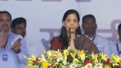 Sunita Kejriwal read aloud her husband’s message and declared, “The INDIA bloc will uphold six promises, including quality healthcare and education, if elected to power.