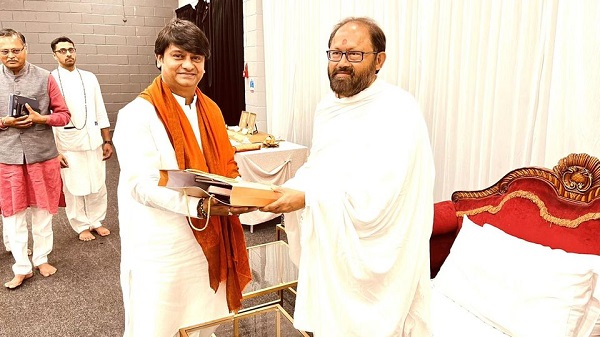 A momentous gathering took place in Harrow, London, on June 23, where two prominent spiritual leaders engaged in a fruitful discussion. Pujay Gurudev Shri Rakesh ji, the esteemed founder of Shrimad Rajchandra Mission Dharampur, renowned for its 206 centers worldwide, met with HH Shri Rajrajeshwar Guruji.