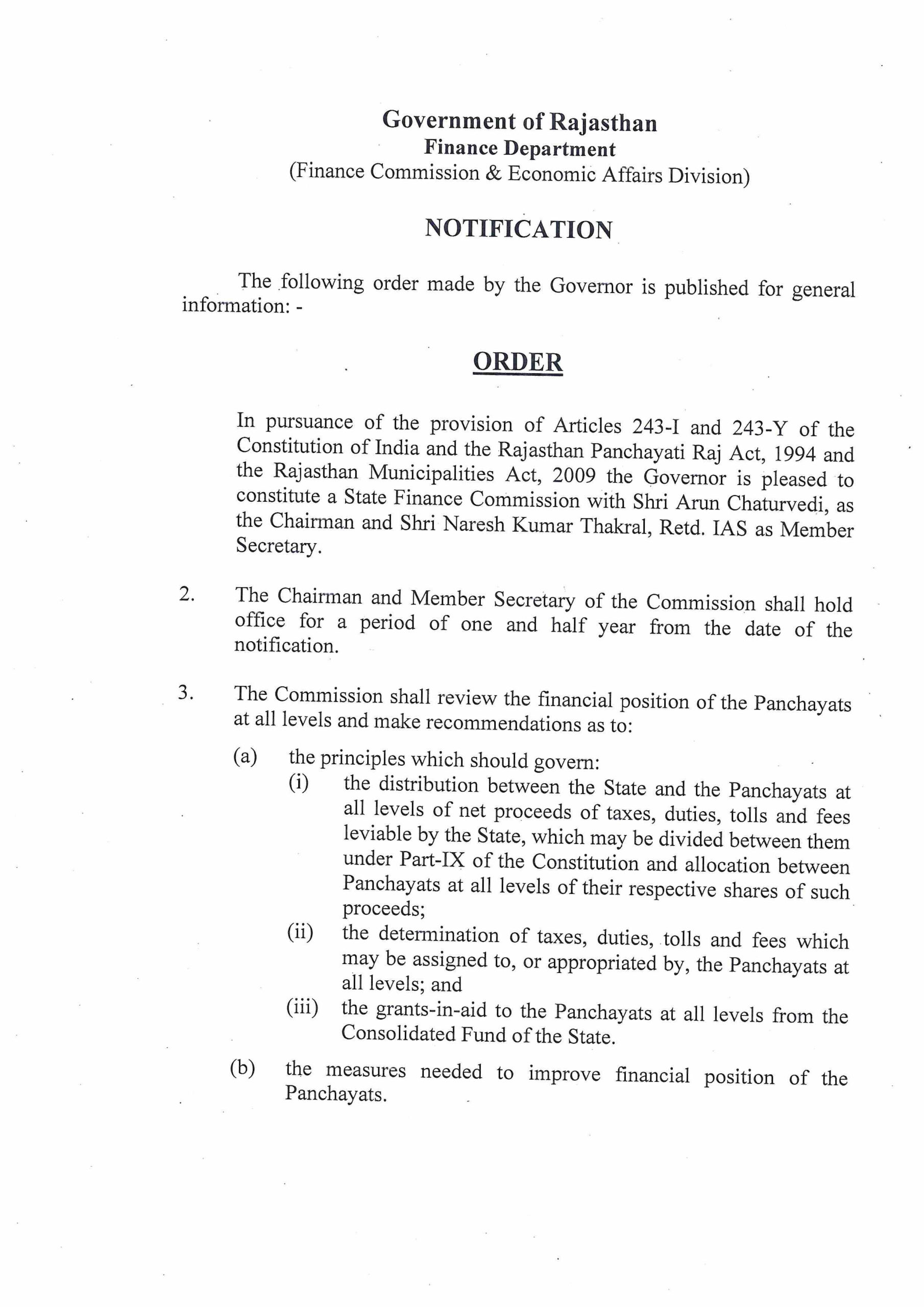 - The Rajasthan government has constituted a new State Finance Commission, appointing former minister Arun Chaturvedi as Chairman and Naresh Kumar Thakral as Member Secretary.