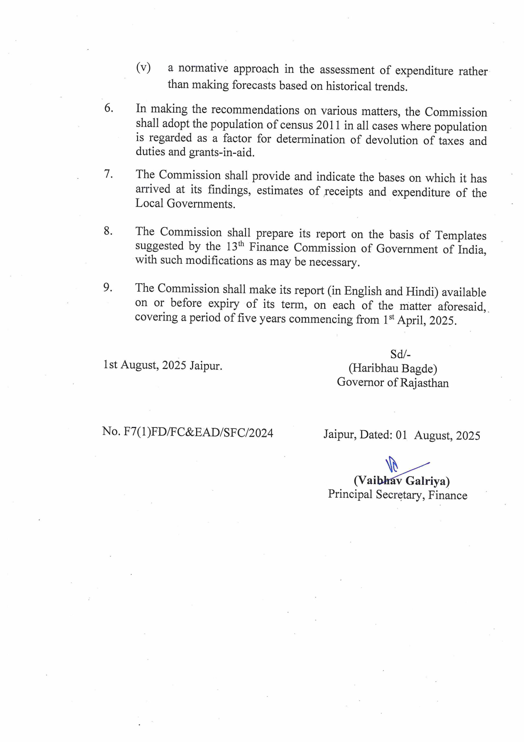 According to a notification from the Rajasthan Finance Department, the Chairman and Member Secretary will hold office for a period of one and a half years. The commission’s primary mandate is to make recommendations on the principles governing the distribution of state taxes, duties, tolls, and fees between the state government and the local bodies.