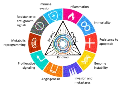 Kindlins, which are integral to transmitting external mechanical signals into biochemical reactions within cells, play a crucial role in maintaining cellular homeostasis. Mutations in Kindlins, influenced by carcinogens such as nicotine and UV rays, can disrupt cellular balance and contribute to cancer progression.