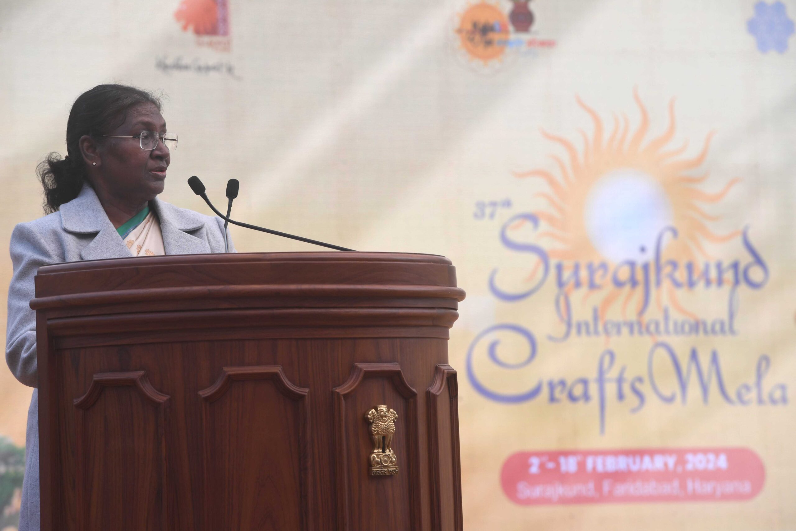 Surajkund, Feb 3, 2024: President Droupadi Murmu on Friday inaugurated the 37th Surajkund International Crafts Mela at Surajkund, Haryana.