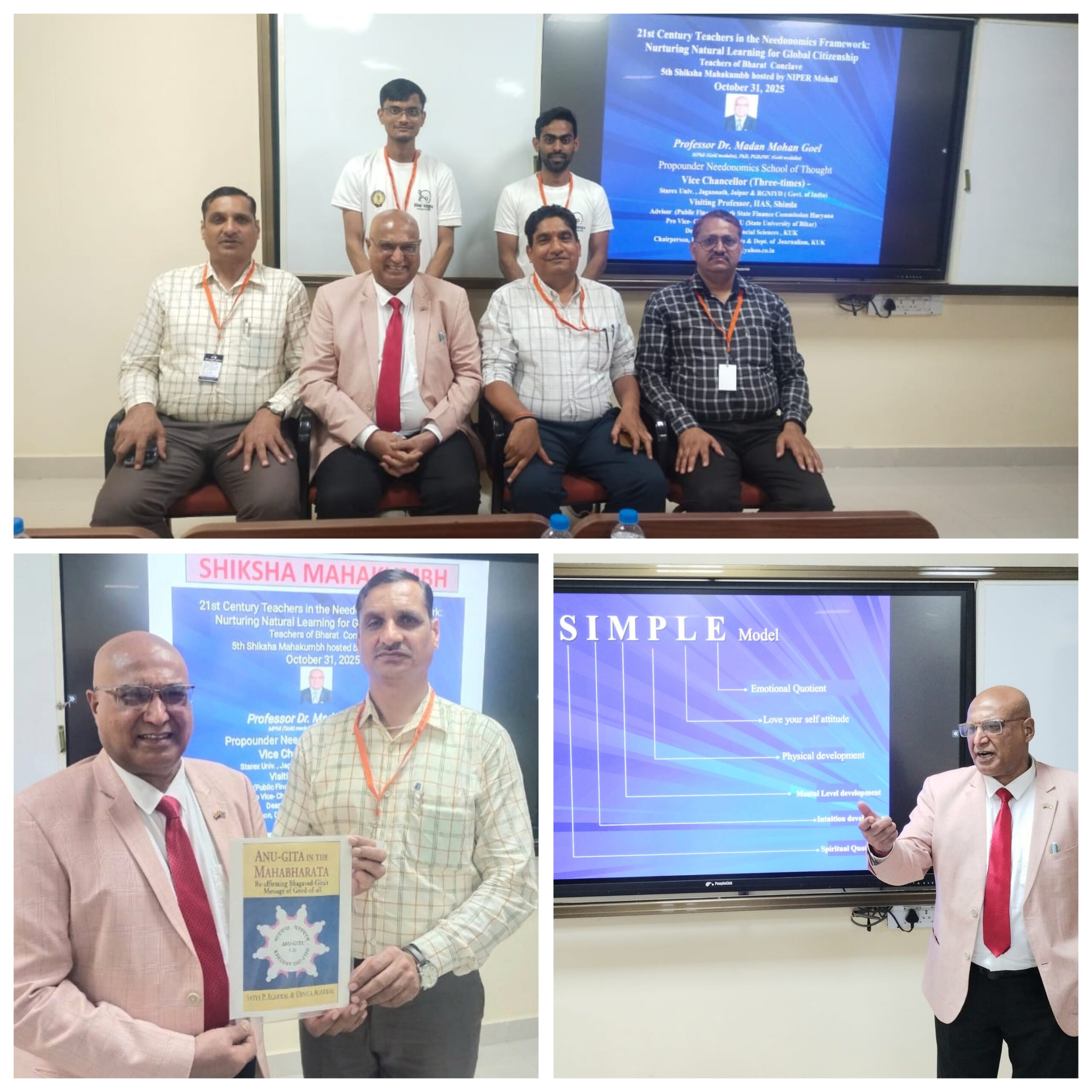 Mohali, 1st November: At the 5th edition of Shiksha Mahakumbh hosted by NIPER Mohali, Prof. Madan Mohan Goel, Propounder Needonomics School of Thought (NST) , Former Vice-Chancellor (Thrice) and superannuated Professor of Kurukshetra University, delivered the Chairperson’s Address on “21st Century Teachers in the Needonomics Framework: Nurturing Natural Learning for Global Citizenship.” Earlier Principal Naryan Singh coordinator delivered the welcome address and introduced Prof M.M. Goel. Major General Suresh Khajuria,Punjab President Vidya Bharti was present on the occasion along with Mr Rezwan Ahmed who acted as rapporteur.
