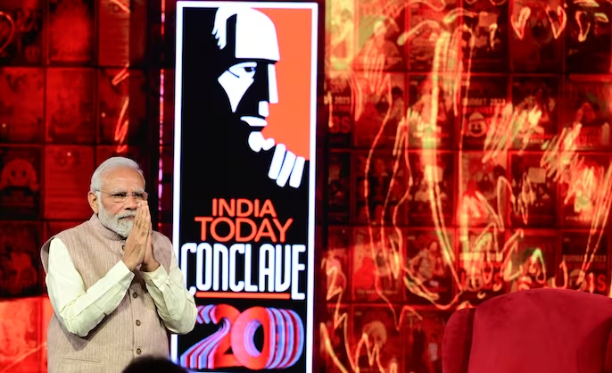 New Delhi, 19th March. Prime Minister Narendra Modi addressed the India Today Conclave at Hotel Taj Palace in New Delhi on Saturday.