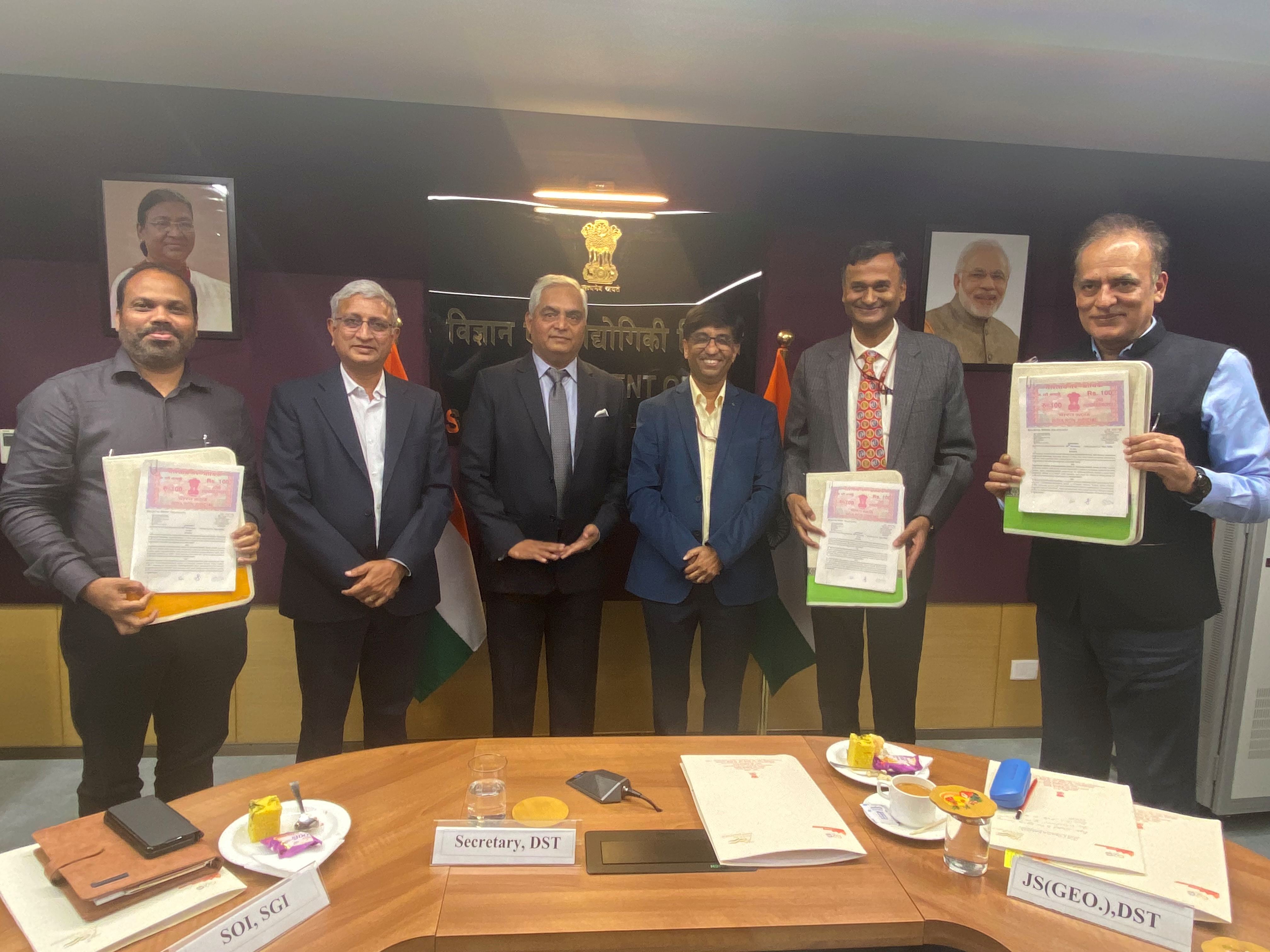 A tripartite MoU was signed between National Geospatial Programme- DST, National Institute of Geo-informatics Science & Technology (NIGST), Survey of India, and IIT Tirupati Navishkār I-Hub Foundation on November 28, 2023, to establish this Centre of excellence- a Pilot.