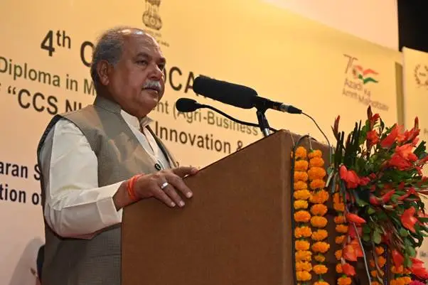 Jaipur, 20th Feb. Union Agriculture and Farmers Welfare Minister Narendra Singh Tomar on Sunday inaugurated the fourth convocation ceremony of the Post Graduate Diploma in Agri Business Management of the Chaudhary Charan Singh National Institute of Agricultural Marketing (CCS-NIAM), Jaipur and the Agri Innovation and Incubation Center.
